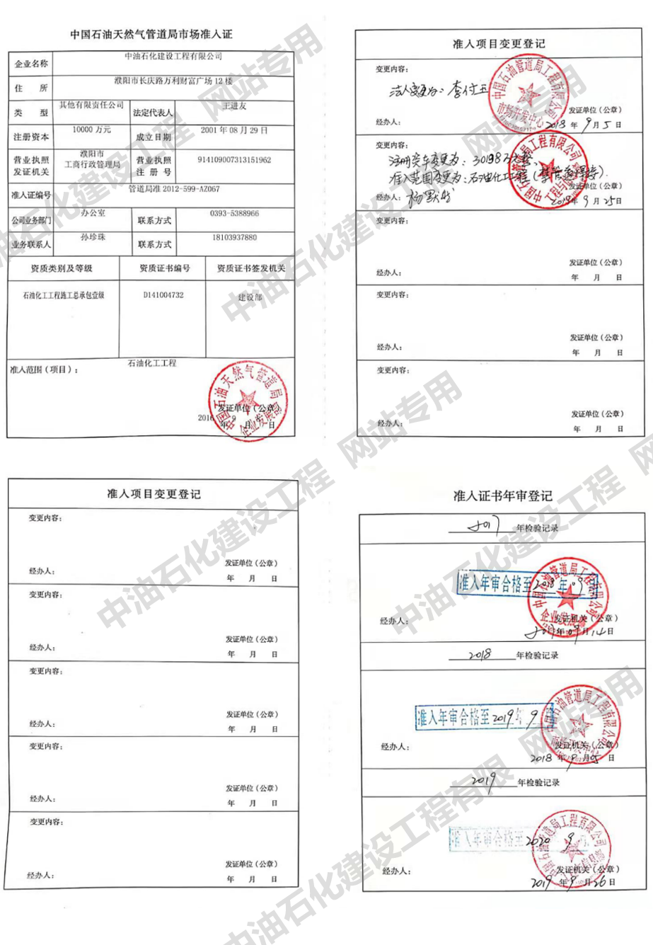 中油石化建設(shè)工程有限公司(CPPC)成立于2001年8月,公司現(xiàn)注冊資金1.1268億元。 經(jīng)過20年的發(fā)展,CPPC形成了以石油化工安裝工程、長輸管道工程、市政工程、鋼結(jié)構(gòu)制安為四大核心業(yè)務(wù),以管道技術(shù)服務(wù)、送變電工程、消防工程、維保-搶險-投產(chǎn)保運為四大輔助配套業(yè)務(wù)的核心技術(shù)品牌,具備PC總承包能力和EPCC總承包能力。至2022年,公司具有施工總承包資質(zhì)5項,施工專業(yè)承包資質(zhì)4項,不分等級2項;特種設(shè)備壓力安裝改造維修許可證,承裝承修電力,中國工業(yè)清洗企業(yè)物理、化學(xué)清洗A級資質(zhì)等。 公司成立20多年來,累計完成場站建設(shè)557座,管道施工6000多公里,輸電線路施工3700公里,電力電纜施工8000多公里,建筑施工950余萬平方米,年營業(yè)能力超過15 億元。